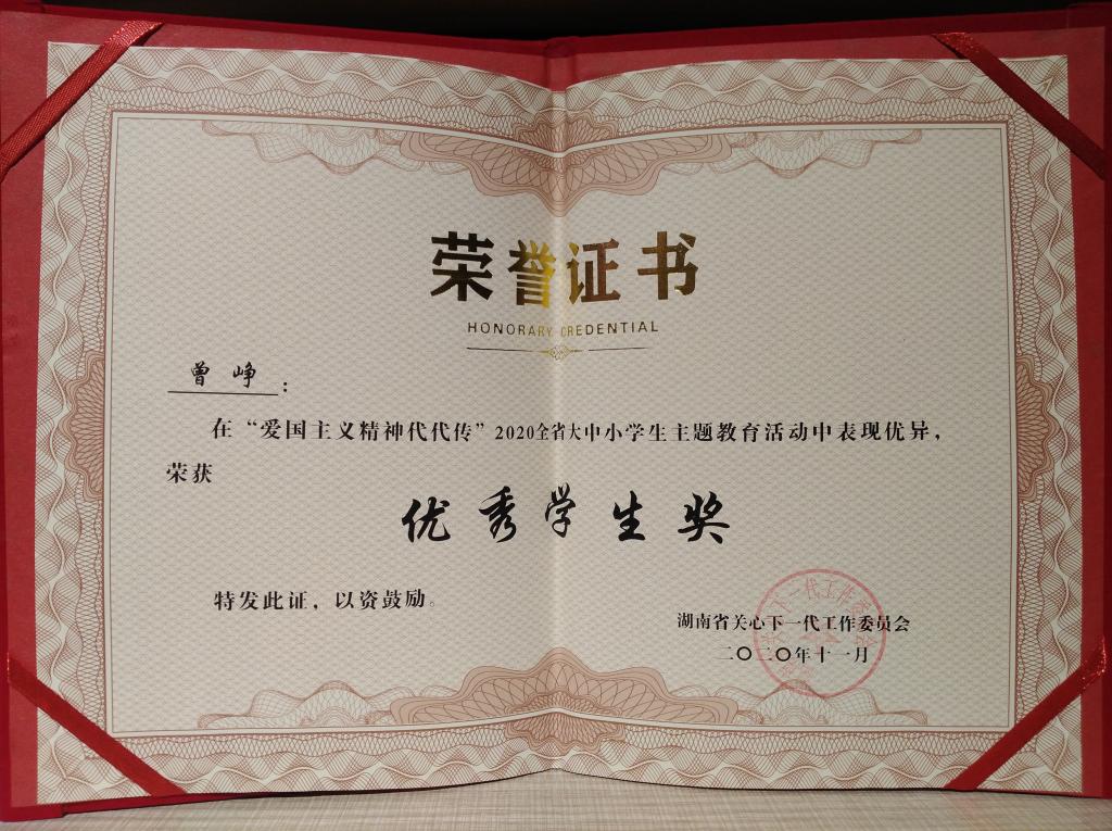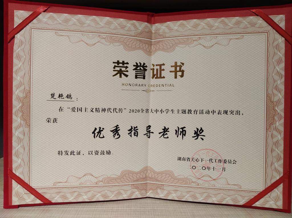 动中表现突出,荣获“优秀指导老师奖”。曾峥同学和赵雅芝同学在活动中表现优异,荣获“优秀学生奖”。(文、图:原雅楠,审:楚艳鸽)