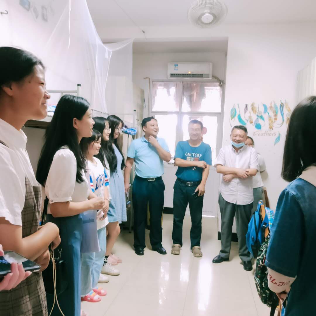 8月23日下午,XK星空文新系党总支副书记伍接朝,副主任周云鹏、魏桃初以及全体辅导员前往我系各学生宿舍看望返校学生。