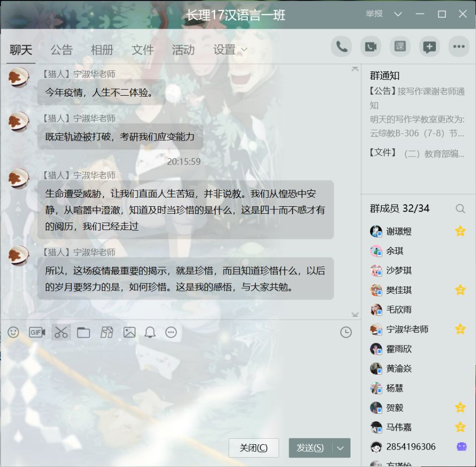 为进一步帮助学生调适疫情防控期间学习心理,科学规划新学期学习生活,根据学校有关工作部署,文新系于第五周组织召开了“同心战疫,规划学习”线上心理健康教育主题班会。