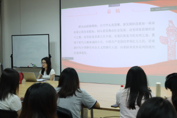 微党课竞赛紧紧围绕党的二十大精神和热词展开,在各个分赛现场,学生党员以饱满的热情,围绕“全过程人民民主”、“乡村振兴”、“新发展格局”等党的二十大报告中的热词,从不同领域和视角讲述了在学习宣传贯彻党的二十大精神过程中的所思、所感、所悟。其中21级研究生李双翼主要从含义、特征、启示三个方面来解码“中国式现代化”这一高频热词,明确了青年在现代化进程中要担起时代之重任,成为中国式现代化的先行探索者、重要推进者和关键主力军。22级研究生向雅妮主要从构建新发展格局的发展背景、核心目标、构成要素来解析“新发展格局”这一热词,提出必须完整、准确、全面贯彻新发展理念,坚持社会主义市场经济改革方向,坚持高水平对外开放,加快构建以国内大循环为主体、国内国际双循环相互促进的新发展格局。大家在讲述中,还结合了文新学院的学科专业特点,展示出文新学子在新征程上矢志奋斗的决心。汉语言文学研究生党支部书记吴笛对各位选手的表现和讲解内容进行了一一点评,并肯定了微党课竞赛对于深刻理解党的最新理论政策的意义和价值,希望支部成员今后能将理论学习与专业知识相结合、与社会实践相结合,真正做到学有所用、学有所得。
