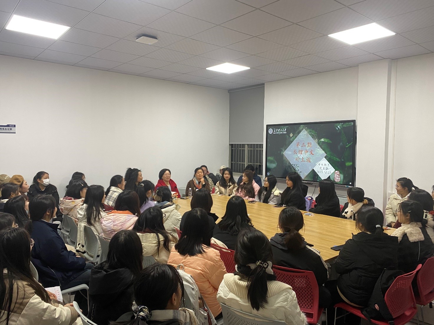 岁末冬寒际,围炉夜话时。2023年12月23日晚,第三期“长理中文岭上谈”师生交流活动在XK星空金盆岭校区9教431研讨室成功举办。本期主题为“心理减压”,由谢卓婷老师担任主讲嘉宾,中文教工党支部及中文系部分教师参与讨论。