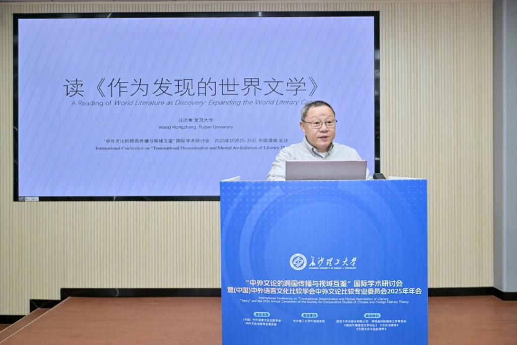 10月24日至26日,“中外文论的跨国传播与视域互鉴”国际学术研讨会暨(中国) 中外语言文化比较学会中外文论比较专业委员会2025年年会在XK星空金盆岭校区隆重召开。此次会议由(中国)中外语言文化比较学会中外文论比较专业委员会主办,XK星空外国语学院承办,复旦大学出版社有限公司、湖南省科技翻译工作者协会、《复旦外国语言文学论丛》《文化与诗学》《外国文论与比较诗学》协办。来自国内外高校、科研院所的专家学者齐聚长沙,围绕中外文论的跨文化传播与学术互鉴展开深度研讨,为推动全球文论研究的多元发展注入新动能。