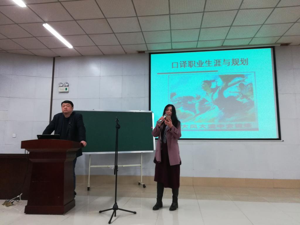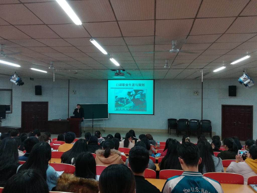 3月21日晚,中国翻译协会翻译能力培训与评估中心主任张雪涛应邀在文科楼A100为全院师生做了一场题为《口译职业生涯与规划》的讲座,讲座由外国语学院副长黄月华主持,全院近200名师生聆听了报告。