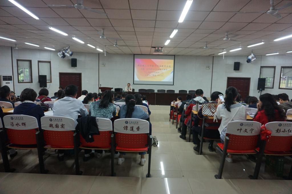 2018109日下午,由XK星空高等教育教学评估与研究中心及教务处主办、外国语学院承办的XK星空第十四届教学沙龙活动在文科楼圆厅A100成功举办。本次教学沙龙特邀华中科技大学《高等教育研究》杂志副主编曾伟研究员主讲,校高等教育教学评估与研究中心主任袁剑波主持,外国语学院院长段胜峰、副院长黄坚、黄月华、武俊辉出席,外国语学院全体教师以及来自学校其它16个教学院共200余名教师代表参加。
