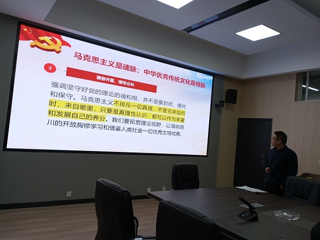 武俊辉院长领学《开辟马克思主义中国化时代化新境界》,他从始终坚守理论创新的魂和根、及时科学解答时代新课题、着力推进党的创新理论体系化学理化、注重从人民群众的创造中汲取理论创新智慧等四个方面进行认真阐述。今年6月30日二十届中央政治局以“开辟马克思主义中国化时代化新境界”为题进行第六次集体学习。习近平总书记在学习时指出,党的二十大提出开辟马克思主义中国化时代化新境界的重大任务,强调这是当代中国共产党人的庄严历史责任。习近平总书记回顾党的百年奋斗史,我们党之所以能够在革命、建设、改革各个历史时期取得重大成就,能够领导人民完成中国其他政治力量不可能完成的艰巨任务,根本在于掌握了马克思主义科学理论,并不断结合新的实际推进理论创新,使党掌握了强大的真理力量。