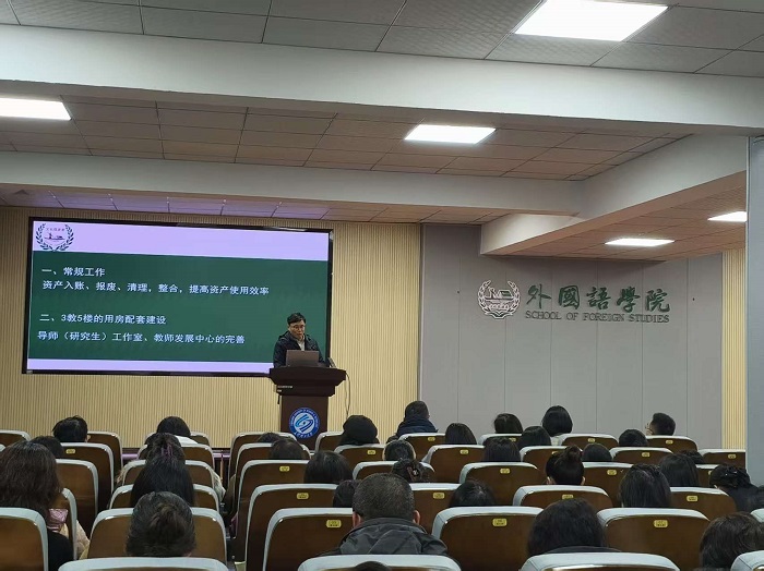 4月22日下午,外国语学院召开全院教职工大会,集中学习校领导调研讲话精神,部署进一步全面深化改革重点工作。院党委书记陈仁凯主持会议,全体教职工参会。