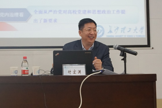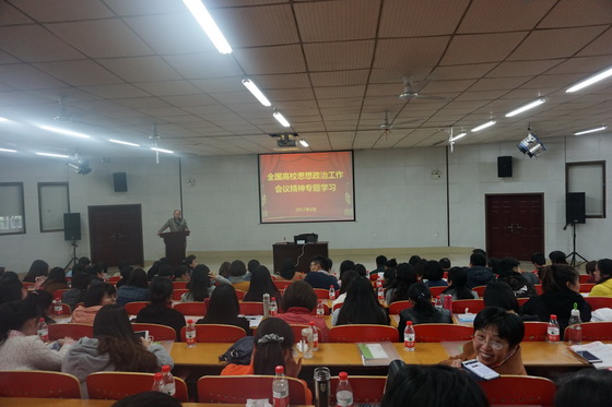 4月11日下午,校党委书记付宏渊在文科楼A100为外语学院师生作了题为《加强和改进高校思想政治工作是重大的政治任务和战略工程——学习贯彻全国高校思想政治工作会议精神体会》的辅导报告。