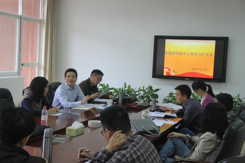 2019年5月20日上午,学院党委在文科楼A-603会议室召开中心组学习(扩大)会,学院党政班子成员和各党支部、系(部)、中心、科室负责人参加了学习会。