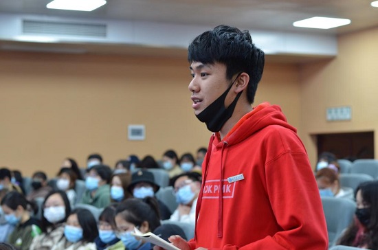 在互动交流环节,同学们就如何加强党史学习、如何看待中美关系、大学时期难忘的经历等方面积极与师兄书记提问交流。付宏渊结合自身经历,耐心、详细地为同学们一一解答。