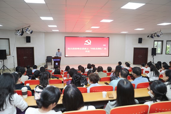 学院党委副书记周芳详细解读《外国语学院2023年度主题教育实施方案》。她就学院组织开展学习贯彻习近平新时代中国特色社会主义思想主题教育作出部署安排。她强调,学院班子成员、全体师生党员要充分认识学习贯彻习近平新时代中国特色社会主义思想主题教育的重要意义,并把主题教育的系列活动与学院中心工作结合起来,与解决发展中的实际问题结合起来,建立健全工作机制,协同推进主题教育。