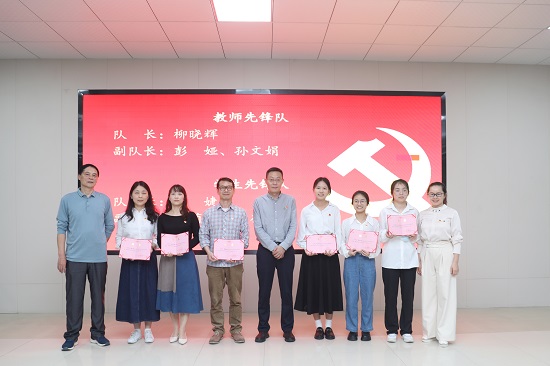 段胜峰院长宣读学院党委《关于成立外国语学院“教师、学生先锋队”的决定》,教师先锋队队长为柳晓辉,副队长为彭娅、孙文娟。学生先锋队队长为毛婕,副队长为王菊芳、李征临。学院党委书记文丽丽、院长段胜峰、特邀组织员张建军分别为师生先锋队领队成员颁发聘书。