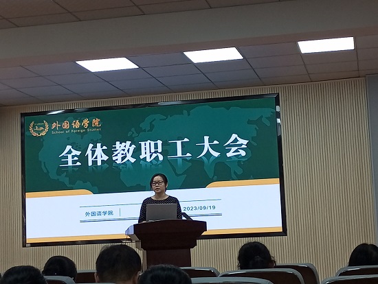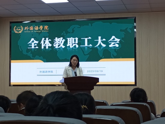 9月19日下午,学院在金盆岭校区3号教学楼321会议室召开全体教职工大会,院党政导班子成员、全体教职工参会。会议由院党委书记文丽丽主持。