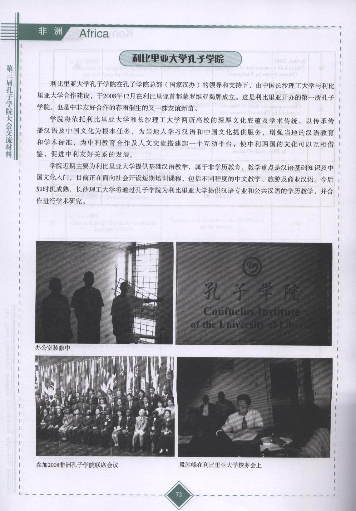 Under the leadership and support of the Confucius Institute Headquarters (Hanban), the Confucius Institute of the University of Liberia was jointly constructed by Changsha University of Science & Technology and University of Libera, will soon be launched in Monrovia, Libera in December, 2008. It is the first Confucius Institute in Libera, also a new bud of the friendly cooperation betweenChinaand African countries.