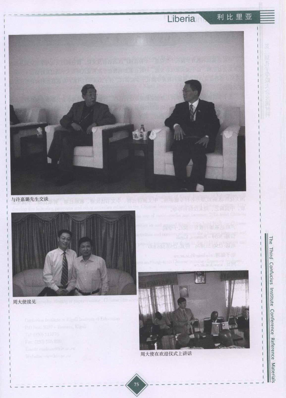 Relying on the deep root of the cultural tradition ofChangshaUniversityof Science & Technology and theUniversityofLibera, the Confucius Institute of University of Libera will take spreading Chinese language and culture as its basic mission. It is to provide service for the natives to study Chinese language and culture, to strength the academic standard of Chinese language education, and to build a interactive terrace for Sino-Libera cooperation of education and humanities exchanges. On this basis, the two countries can learn from each other and promote the friendly relation of development between the two nations.