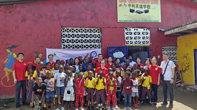 2024年5月24日,在六一儿童节即将来临之际,利比里亚大学孔子学院携手第16批援利医疗队,在利比里亚大学孔子学院教学点中利友谊学校共同举办了一场口腔卫生健康讲座,并随后为该教学点全体教职工进行了义诊。利大孔院教师、医疗队全体队员及中利友谊学校全体师生一百余人参加活动。
