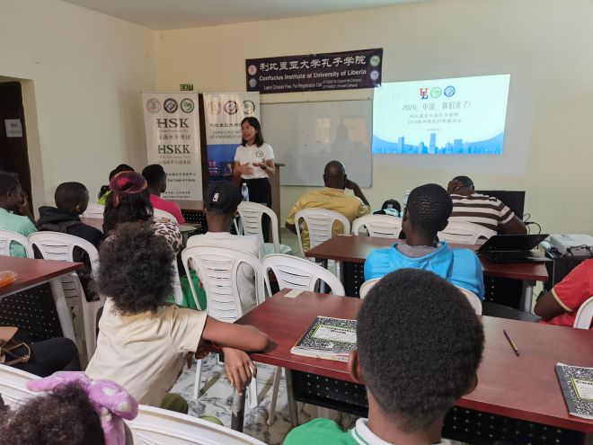 最后会议进入了热烈的答疑环节,孔院教师和刚从中国返回利比里亚的留学生们认真仔细地回答了与会同学们的提问。