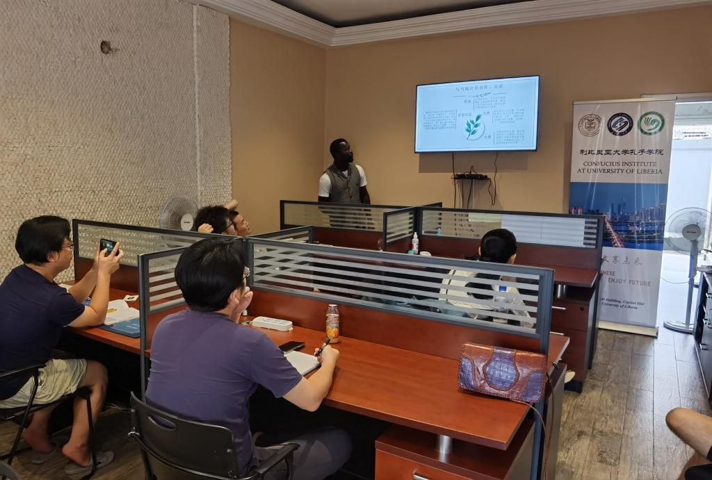 为助力中资企业减少中利交流障碍,帮助中资企业员工更好地了解利比里亚语言与文化,当地时间7月2日,利比里亚大学孔子学院中方院长周红专携教师代表来到中兴通讯利比里亚代表处,为该公司员工举办了首场利比里亚文化专题系列讲座。中兴通讯利比里亚代表处李刚球经理、刘兴旺经理及代表处多位技术专家听取了讲座。大家纷纷表示获益匪浅。