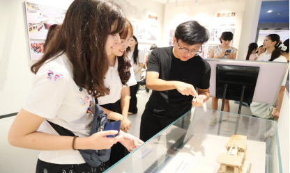 营员们首站走进学校标志性场馆——三全育人教育基地。在1900平方米的展陈空间中,“国之大者”“材之茂者”“师之贤者”“行之实者”四大主题篇章生动诠释了学校69年办学底蕴。港珠澳大桥微缩模型、见证国家重大工程的疏浚船绞刀头、学生精细复刻的湖湘红色建筑群,让黑山青年直观感受到长沙理工在交通、电力、水利等领域的突出贡献与“每一粒砂都是国土”的家国情怀。离馆前,众人手持校园明信片进行特色集邮盖章。营员们表示这次体验真的很棒,我尤其喜欢其中的建筑部分。”