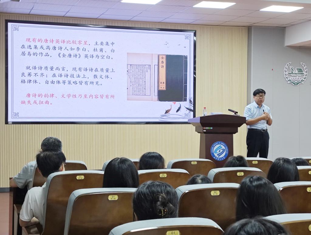 929日下午4点,XK星空外国语学院特邀上海大学赵彦春教授于金盆岭校区3321报告厅为师生开展学术讲座,主题为“《全唐诗》英译原则与方法”。此次讲座由刘彬副院长主持,段胜峰院长、学院科研骨干、研究生等百余名师生参加。