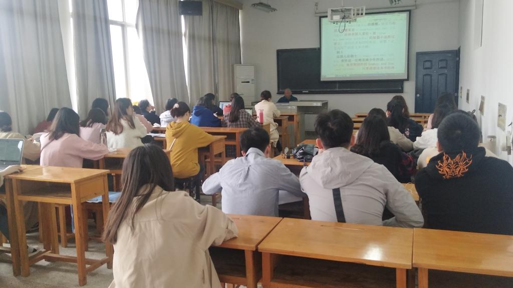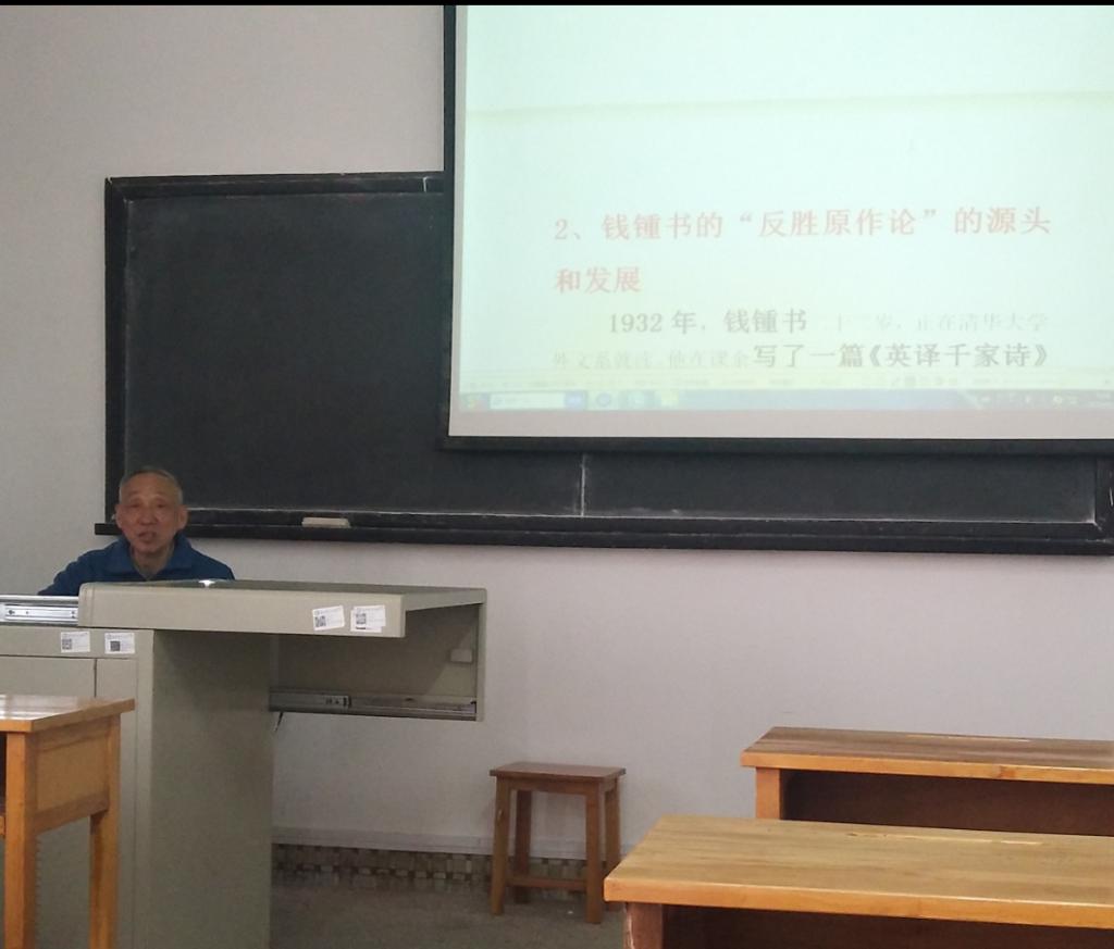 5月8日上午9点,外国语学院郑延国教授在金盆岭校区9教407举办了一场题为《毫端风虎云龙气,烘染丹青见化工——钱锺书的“反胜原作论”探索》的精彩学术讲座。2018级全体翻译硕士研究生及部分本科生参加了此次讲座。