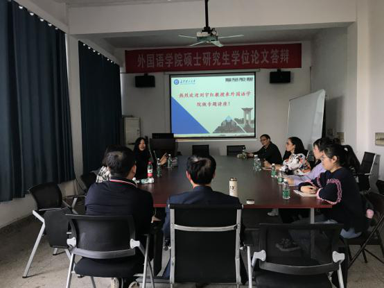 此次会议主要就武俊辉老师的申报书进行重点指导,武老师从选题依据、学术价值、重难点等方面就其申报书进行了详细阐述,刘教授一一进行了点评并提出了自己的意见。其后与会老师们进行了热烈的讨论,并向刘教授请教各自研究中的难题和疑问,刘教授都一一解答,提出了具体的指导意见。