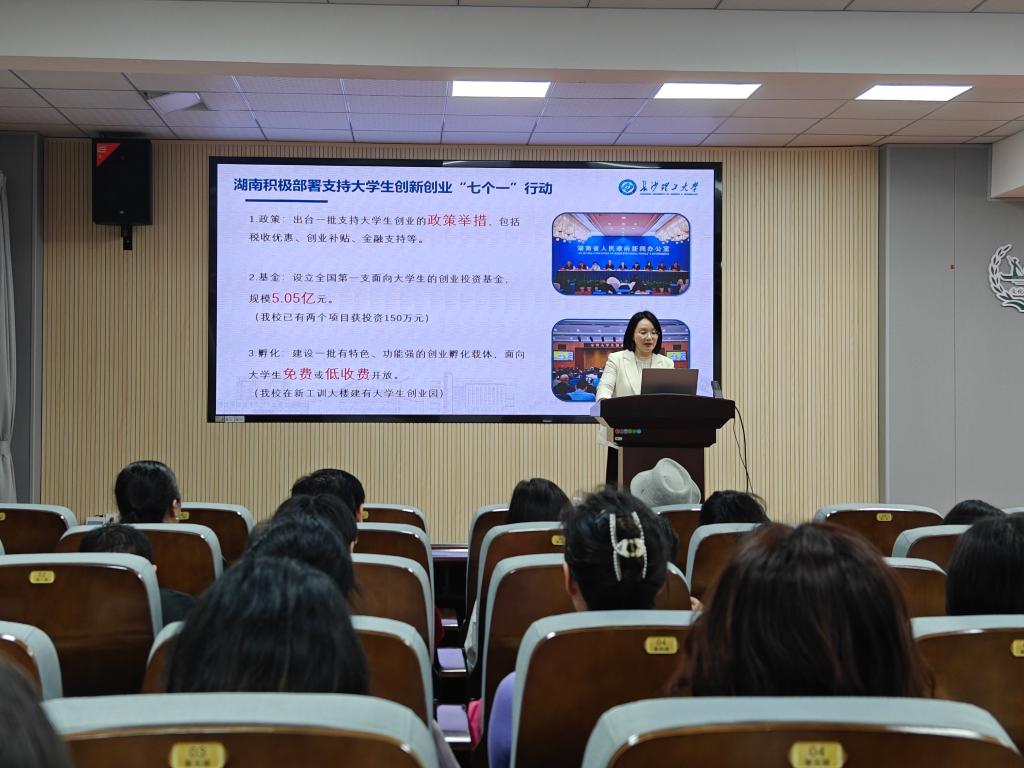 会上,周芳详细介绍了湖南省支持大学生创新创业“七个一”行动政策,包括搭建一批创业孵化平台、优化创业培训体系、设立专项扶持基金等具体举措,强调政策对大学生创业的全方位支持。此外,她还结合《湖南省进一步支持大学生创业的若干措施》,重点解读了“金种子”创业大赛、创业指导和项目孵化等关键内容,鼓励教师积极引导学生把握政策机遇,提升创新创业能力。