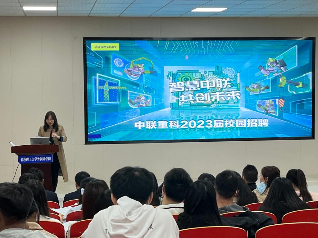 2022年11月1日下午四点半,中联重科工程起重机公司人力资源负责人谢娟萍部长一行人到XK星空文科楼圆厅A100面向全校师生开展就业交流宣讲会,我院领导高度重视,院党委书记文丽丽、院长段胜峰与来校用人单位进行了深入交流,院党委副书记周芳、副院长季红琴,副院长谭莲香、就业专干龙洋、研究生辅导员陈若晨出席宣讲会,我院2023届本科生及研究生参加宣讲会。