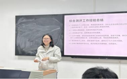 第四部分为办公室进行问题总结。办公室主任朱海霞提出在综合测评工作中存在较多问题,如材料格式问题,时间观念不足,材料不能及时提交,未仔细研读评定方法,信息核实未检查上交及回复消息不及时等,希望在之后的综合测评工作中能进一步改进。