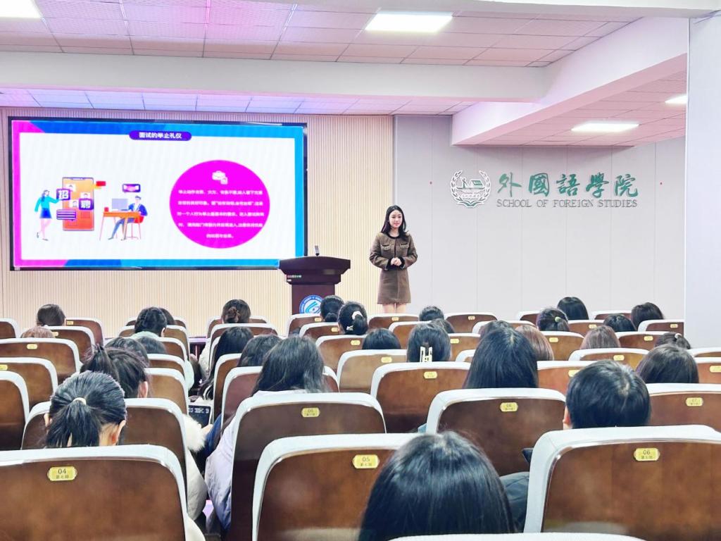 “春拂三月繁似锦,巾帼笑靥贺佳节”,正值“三八”国际劳动妇女节来临之际,为了弘扬国际妇女节精神,倡导我院女性自信自强,提升女性求职能力,2024年3月7日晚上,我院于3教321报告厅开展了“面试妆容穿搭与技巧”讲座,邀请了樊明焱老师就“面试妆容、穿搭与技巧”展开分享,共计117名同学参与其中。