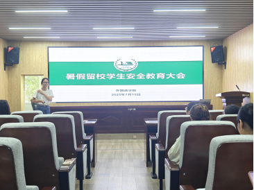 为切实做好暑假留校学生安全管理工作,增强学生安全意识,7月10日下午14:30,外国语学院在三号教学楼229会议室召开暑假留校学生安全教育大会。学院党委副书记周芳、学工办主任武巧琳、年级辅导员毛婕及留校学生参会。