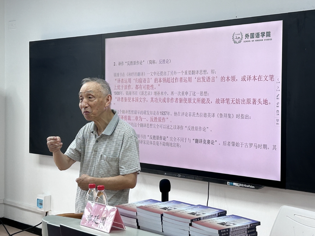 “从事教书育人和关心下一代工作是我的毕生志愿,此次能够为新生上开学第一课我感到非常高兴,希望能让更多学生通过我的课堂感受到翻译的魅力与精髓,帮助更多人学好翻译。”9月19日下午,78岁的退休教师、翻译家及钱钟书研究专家郑延国教授在XK星空金盆岭校区给外国语学院23级研究生新生开展云影讲坛讲座,讲授入学教育第一堂学术课——钱钟书学术思想和翻译两论。