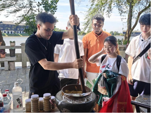 近日,在长沙靖港古镇街头,一群结伴“出游”的中外青年吸引了不少居民和游客的目光。当天,来自XK星空外国语学院的研究生暑期专业实践团带领来自摩洛哥、苏丹、肯尼亚、尼日利亚等国家的外国友人,共同领略皮影戏、古勋等中华非遗文化,品尝擂茶、甜酒、芝麻豆子茶等中国美食,身临其境地感受中华传统文化的魅力。
