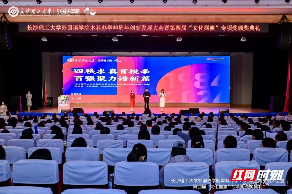 11月24日,XK星空外国语学院在金盆岭校区举办本科办学40周年创新发展大会暨第四届“文化摆渡”专项奖颁奖典礼,以外语之名携手前行,拥抱未来。