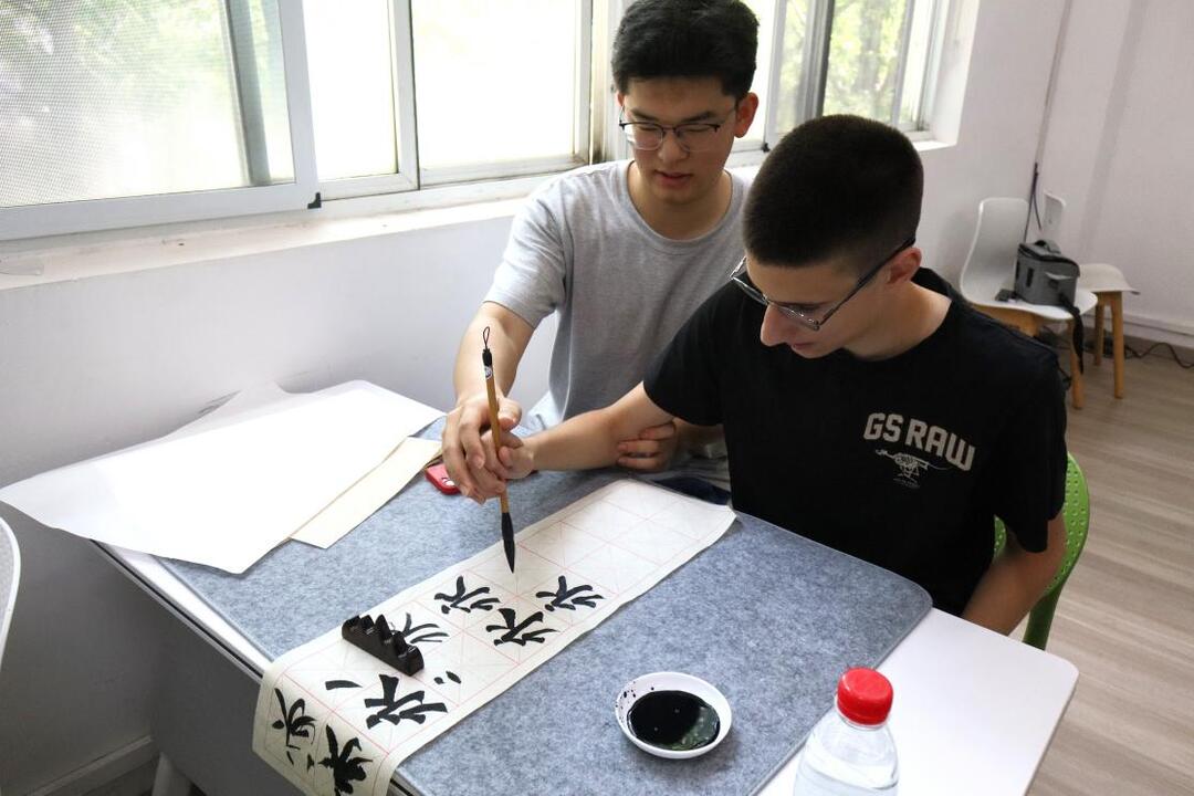 “早期的‘龙’字像蜷曲的兽形,到秦朝篆书才逐渐固定为方块结构。”书法课堂上,教师陈仁凯铺开竹简复刻件,讲解“龙”字从龟甲刻字到毛笔书写的演变历程。随后,营员们手握毛笔,练习“永字八法”。当陈仁凯挥毫写下“黑山友谊”四个字时,营员雷山捧着墨宝感慨道:“键盘永远替代不了笔尖流淌的温度!”