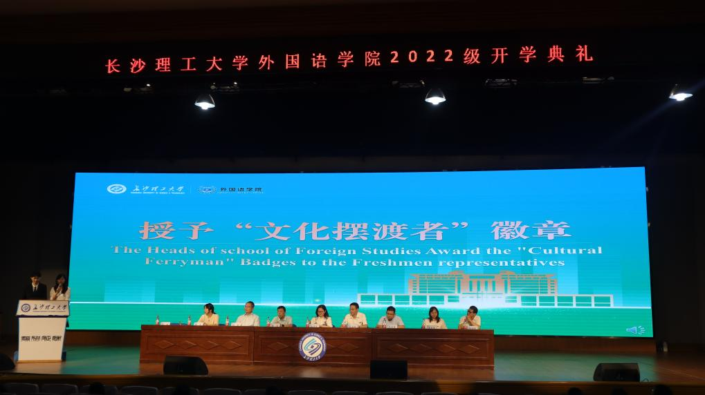 “这一枚绿色的‘文化摆渡者’徽章,不仅代表着外语人的身份,更凝聚着外语人‘文化摆渡者’的精神,承载着外语人的使命和荣光!”近日,XK星空外国语学院在金盆岭校区五教大礼堂举行开学典礼,并为265名2022级新生举行授徽仪式和诵读文化摆渡者誓词活动。学院全体党政领导班子成员、系主任、新生班主任、辅导员,以及2022级本科生、研究生共同参加。