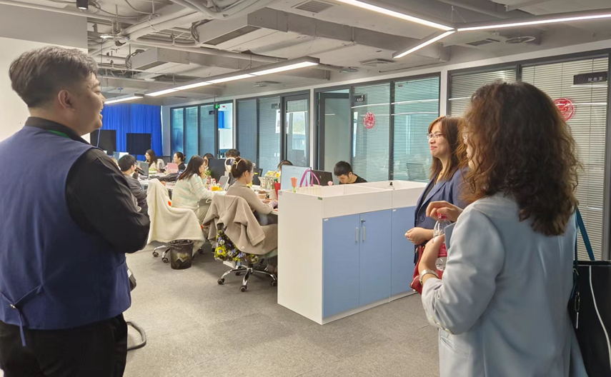 为进一步推进“新文科”建设实践,拓宽“新文科”人才培养模式下的多渠道就业路径,丰富我院新媒体领域校企合作资源,外国语学院副院长季红琴、谭莲香,翻译系教师李颖博士于11月3日上午参观走访了湖南酷陆网络科技有限公司。公司人力资源总监、XK星空校友粟海洋先生热情地介绍了公司目前开展的四大建设项目,并与我院教师共商多样化校企合作模式。