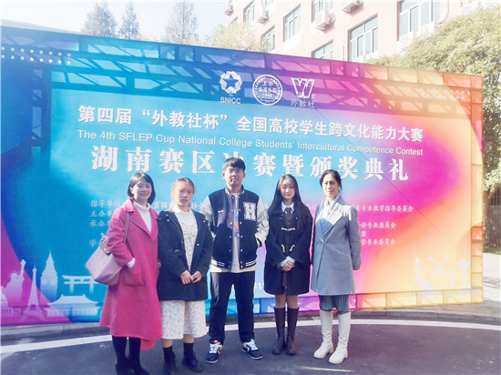 11月26日至27日,第四届“外教社杯”全国高校学生跨文化能力大赛湖南赛区决赛和总决赛在湖南师范大学鸣锣开赛。此次大赛由湖南师范大学主办、上海外语教育出版社和湖南师范大学外国语学院承办。通过现场两轮角逐,来自XK星空城南学院2019级英语专业的朱泽方、2020级英语专业的杨娜以及2020级电气工程及其自动化专业的郝健跃组成的代表队,在外国语学院孙文娟老师和王春湘老师的指导下,凭借良好的综合能力和现场表现,最终夺得本科二组一等奖。