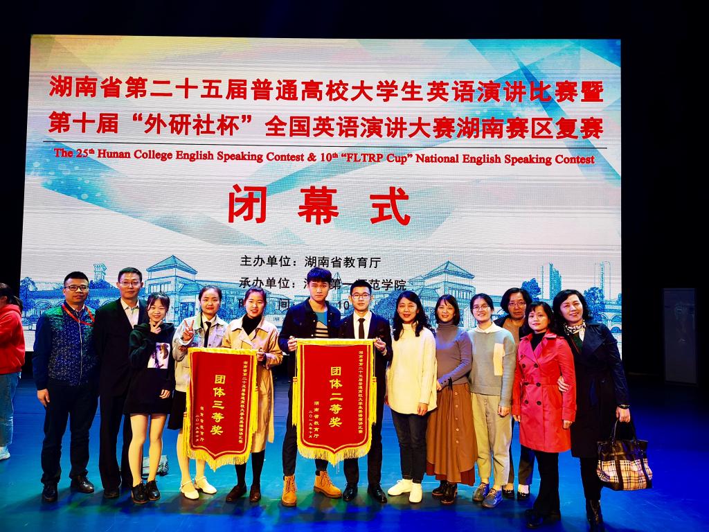 在10月27日结束的湖南省第二十五届普通高校大学生英语演讲比赛暨第十届“外研社杯”全国演讲大赛湖南赛区复赛中,XK星空代表队获得竞赛一组团体二等奖(第一名),城南学院代表队获得竞赛二组团体三等奖。其中XK星空汽车与机械工程学院阳学恒获得非专业组个人一等奖(第二名),经济与管理学院陈颖仪获得非专业组个人三等奖,外国语学院英语1701班陈康获得专业组个人三等奖。城南学院市场营销专业陈宜群,李姗姗获得非专业组个人三等奖,方涵娜获得专业组个人三等奖。指导老师为张志武、刘力、潘莹、孙文娟、彭娅以及王浩萍。