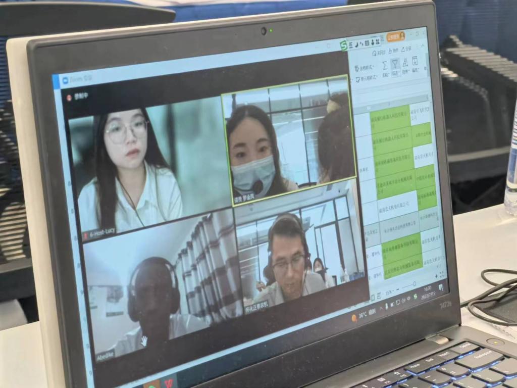 此次口译协助工作专业术语繁复,对接企业代表口音难懂,这对四名志愿者而言无疑是巨大的挑战。在面对肯方公司代表口音难懂的情况下,志愿者们积极询问并反复确认双方意愿,以确保信息传达的准确性;在面对中方公司代表给出的专业性描述,志愿者们也力求将其转换为简单易懂的译文,以确保肯方公司信息接受的良好效果;在面对肯方公司给出的意愿产品图不清晰和网络延迟的情况下,志愿者们临危不乱,迅速联络省内农机专家确认对方需求,并在现场对接了生产厂商,确保了整场会谈的顺利进行以及中非双方企业合作意愿的达成。