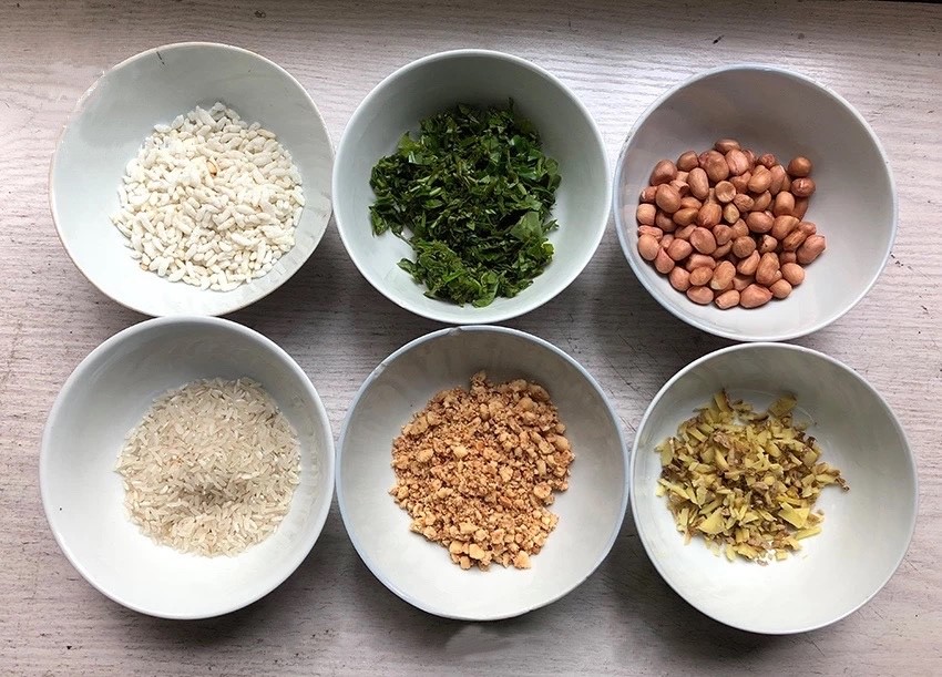 在此次活动中,彭依梦学习并实践了做擂茶的过程。擂茶制作用料很讲究,制作擂茶时,按一定比例加入上等茶叶、大米、豆、花生、芝麻、玉米等,放进陶制擂钵,用茶枝做成的圆头擂棒,细细地研碎,磨成泥状后倒进茶钵里备用。最后冲开水和匀,加上炒米,擂茶就完成了。