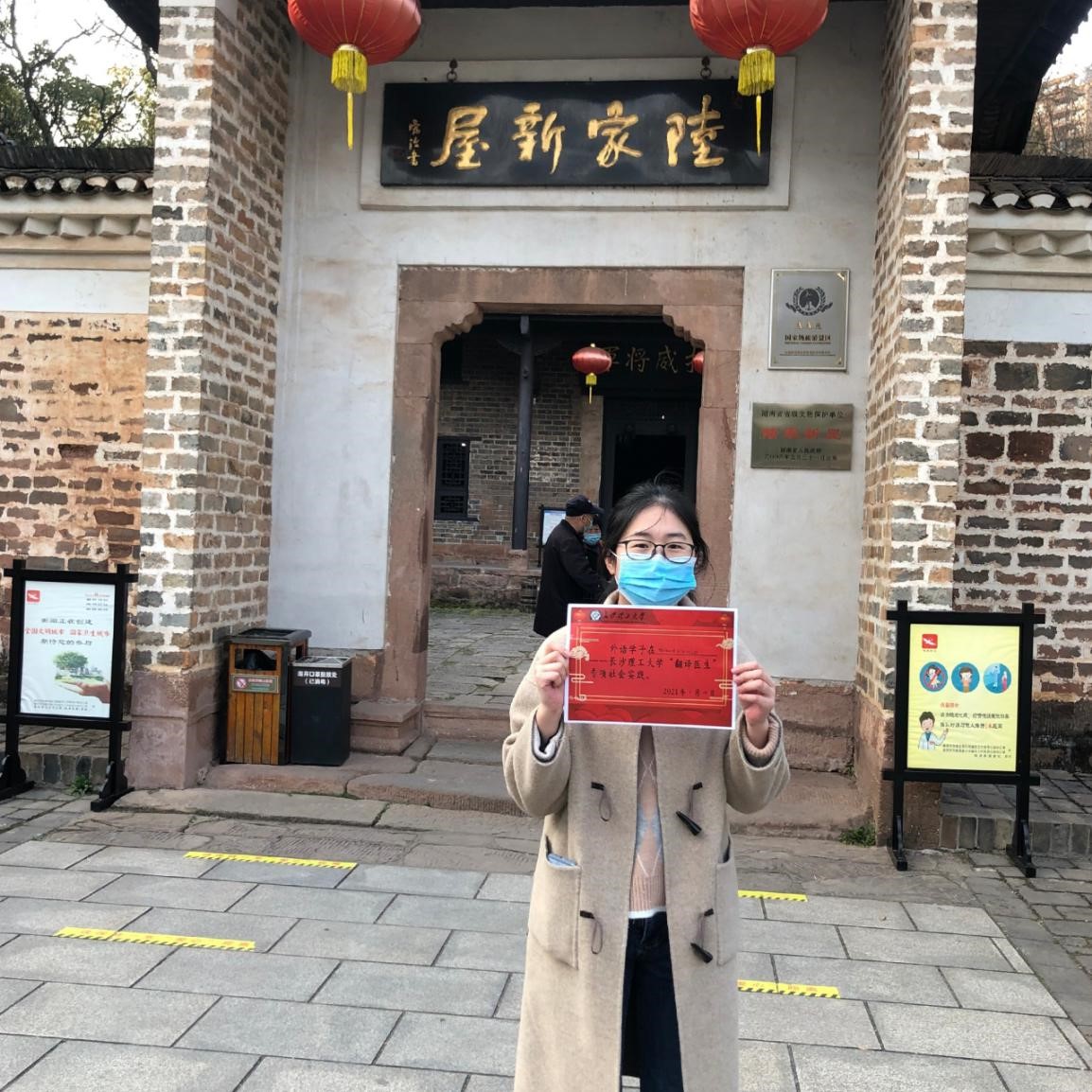 2021年1月19日,为响应学院号召,提高社会实践能力,宣扬先辈优秀革命精神,传承中华优秀品格,外国语学院英语1801班黄佳童来到衡阳保卫战纪念馆,开展“翻译医生”活动。此次活动,她参观展馆、拍照搜集资料并上网搜查展览馆资料,完成翻译工作。