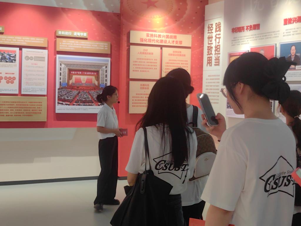“‘三全育人’教育基地内容丰富、展览形式多种多样。我不仅体验到了艺术与科技相融合之美,还感受到了长理丰厚的人文底蕴!XK星空在自我成长的同时,不忘积极践行高校的社会责任与担当,积极服务国家战略与地方经济社会发展。作为新时代青年,我们应当把论文写在祖国的大地上,把“小我”融入“大我”!”来自英语笔译专业的易文炫如是说。