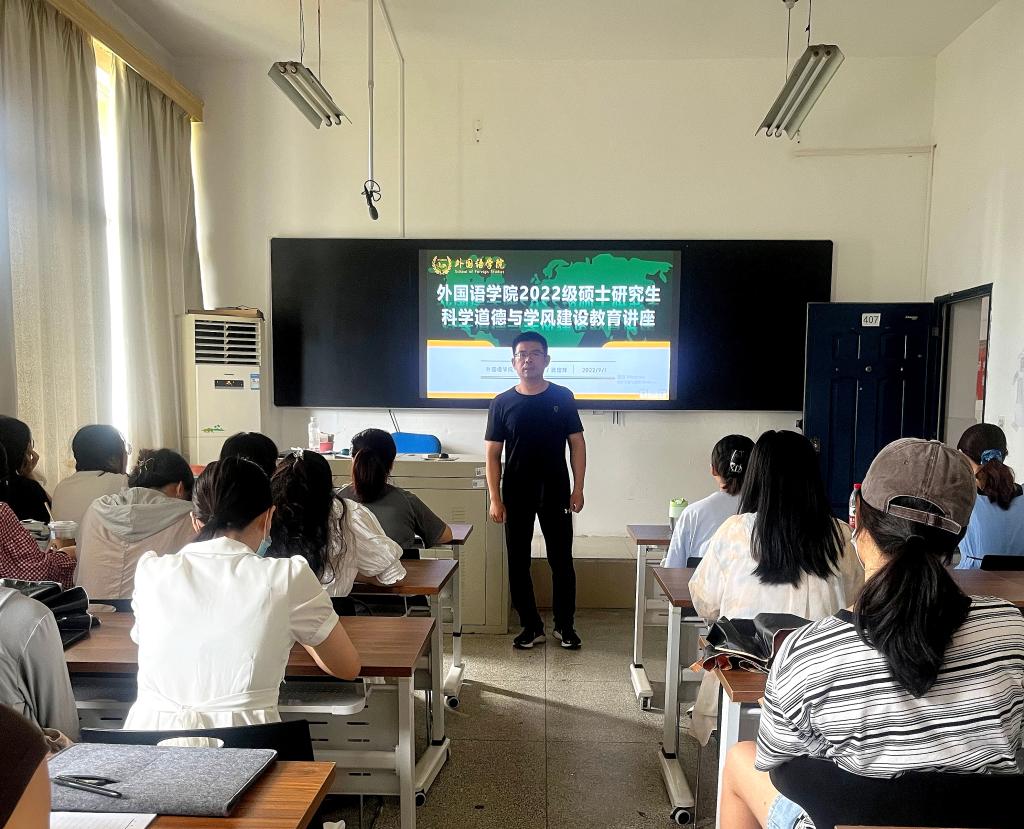 为使2022硕士研究生新生尽快适应研究生生活,熟悉个人培养方案制定等方面事务,外国语学院于9月1日下午开展2022级硕士研究生学业规划与职业发展教育、科学道德与学风建设教育等系列讲座。讲座由副院长武俊辉主讲。系列讲座内容如下: