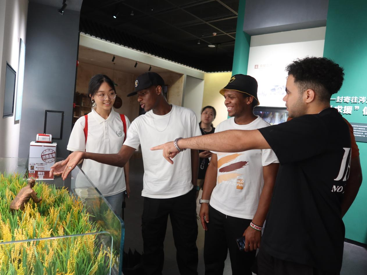 “我很开心在博物馆墙上看到了我们总统和袁隆平院士的合影,这是对中非友好交流伟大时刻的纪念。很感谢他帮助我的国家和世界上很多饥饿的人民极大地解决了温饱问题,他是一位世界级的伟人!”在看到袁隆平院士对世界粮食安全的贡献板块时,来自尼日利亚的亚当激动道。外国友人们也放慢脚步,仔细阅读展厅的图示与说明,实践团成员全程对展厅内容进行翻译讲解。