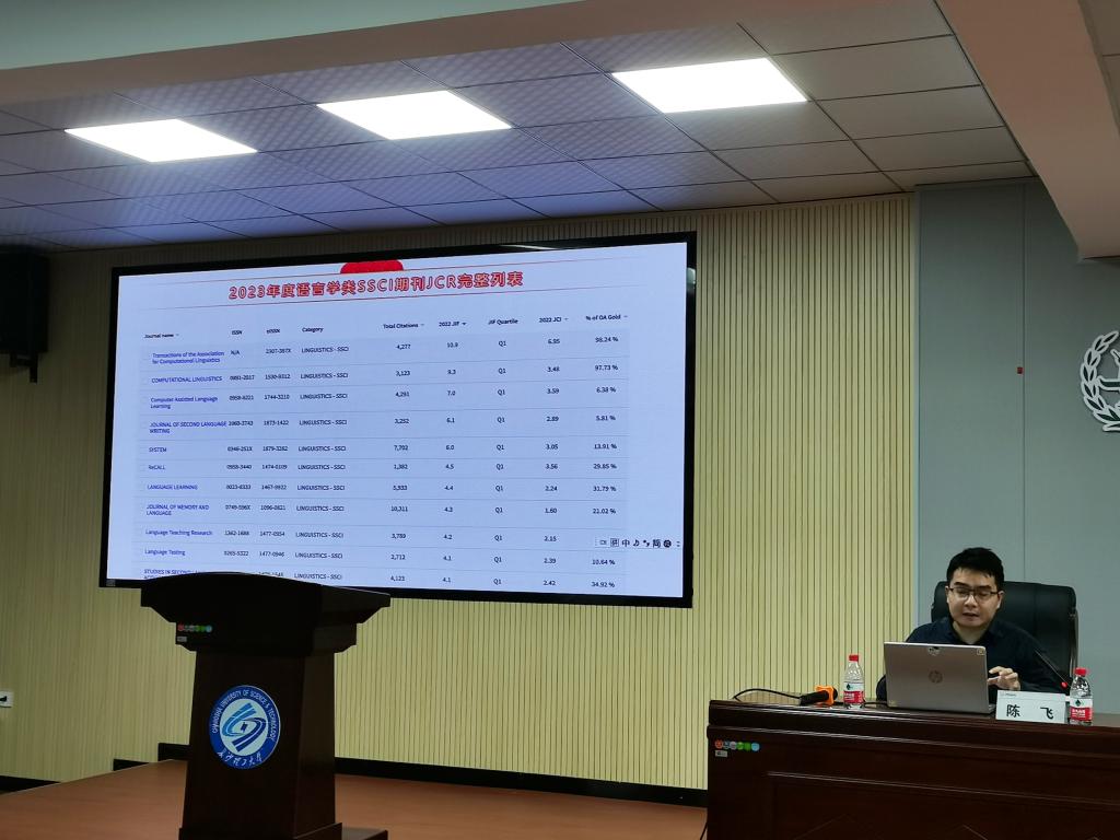 为了学院师生了解撰写和发表语言学领域国际SSCI期刊论文的技巧和要点,提升自身学术研究的水平和影响力,10月15日下午4点,院特邀湖南大学外国语学院教授陈飞于金盆岭校区3教321报告厅为我院师生开展了主题为“国际期刊学术论文撰写与发表技巧”的博力学术论坛。