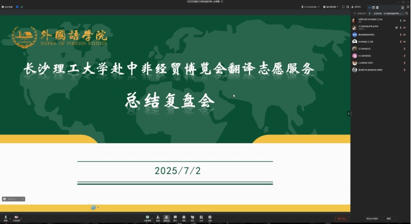 为构建更为专业的涉外服务体系、提升后续志愿服务效能,7月2日晚8点,XK星空外国语学院组织召开第四届中非经贸博览会研究生暑期专业实践团翻译志愿服务总结复盘会,围绕6月12日至15日服务工作展开全面总结。各岗位实践团成员在会上热烈交流,回顾了四天高强度的服务历程。