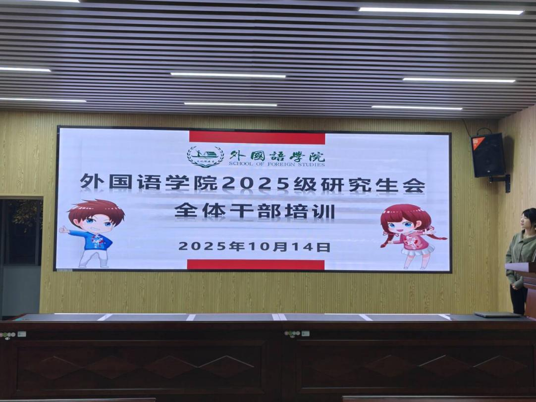 为进一步提升外国语学院2025级研究生会学生干部的综合能力与业务水平,切实推进各项工作规范化、高效化开展,10月14日晚8点,外国语学院研究生会在三教229报告厅组织开展了全体学生干部培训。本次培训由轮值主席彭伊帆主持,各部门部长轮流主讲培训,研会全体学生干部积极参与。