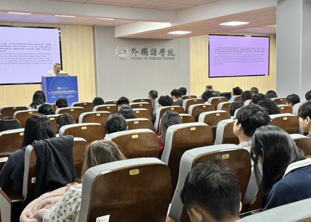 10月26日上午8点35分,XK星空外国语学院特邀复旦大学教授汪洪章于金盆岭校区3教321报告厅为我院师生开展专题讲座,聚焦张隆溪新著《作为发现的世界文学:扩展世界文学的经典》,解析如何以全球视野破除比较文学与世界文学研究中的欧洲中心主义迷思。