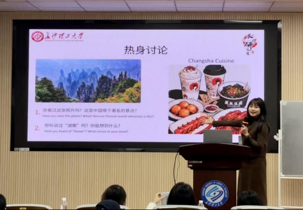 赛中,选手们围绕“湖湘文化”主题进行对外汉语教学,16位选手从饮食、景点、手工艺和湖湘精神等不同的角度进行讲解,选手在讲解过程中有生动幽默不失风趣的语言,也有美食和人文景观图片和视频,通过教学让在场的老师和同学感受到了湖湘文化的魅力。