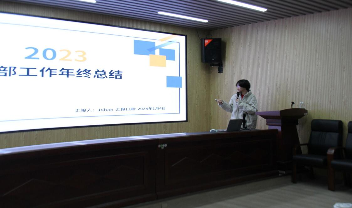 各部门代表先后进行总结发言,从工作总结、工作计划、总结反思三个方面总结本学期工作并规划下学期的工作安排。团委书记陈若晨总结本学期的团委学生会工作,针对性地指出了工作中的不足;同时对团学成员和下学期的团学工作提出了更高的期望与要求,希望团学成员提高汇报状态和条理性、提升工作效率、多方面提升自己。